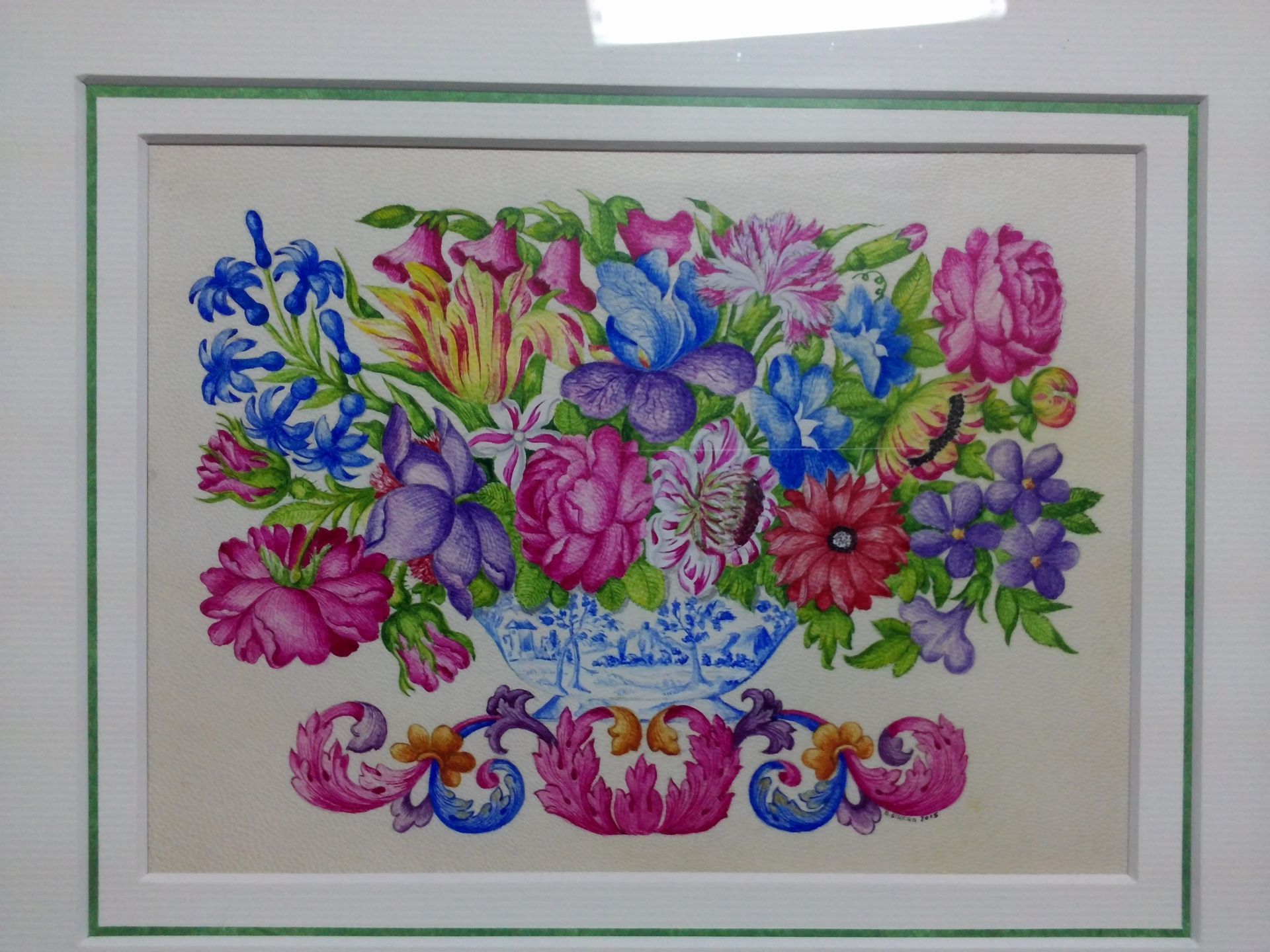 Fleurs au vase chinois - parchemin - pigments naturels